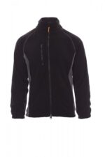 Veste polaire bicolore pour homme à zip intégral de 8 mm en plastique noir, manches raglan, coulisse réglable à la taille, élastiques serre-poignet, deux poches avec zips couverts, une poche avec zip sur le devant, col avec bordure de renfort en contraste, coutures renforcées.