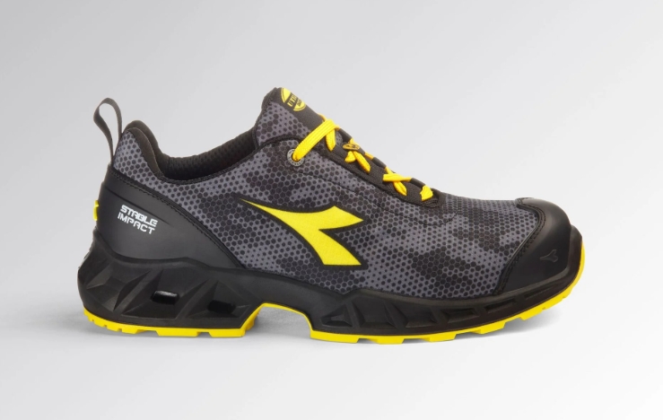 Chaussures de sécurité basses S3S hydrofuges, en tissu technique polyester. Support ergonomique du talon et protection du bout en TPU. Bout en aluminium 200J. Insert antiperforation K-SOLE. Chaussant 11. Technologie d’amorti Stable Impact System. Doublure en Air Mesh avec insert anti-déchaussement en microfibre. Semelle de propreté anatomique, antistatique et amovible en mousse de PU recyclée à cellules ouvertes, respirante et avec traitement aux charbons actifs. ESD.